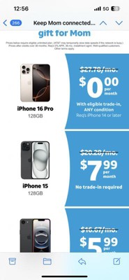 ⁶ Roadside Assistance, Emergency SOS, and Messages via satellite are included for free for two years with the activation of any iPhone 14 or later model. Connection and response times vary based on location, site conditions, and other factors. Messages via satellite requires a carrier plan. SMS messaging via satellite is available on supported carriers. SMS message rates may apply. See https://support.apple.com/kb/HT213885 for more information.