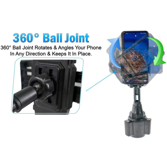 Give your cell phone a comfortable and secure resting place in your car, truck, or any other vehicle with this Adjustable Cup Holder. The adjustable base makes for a perfect fit in most car cup holders. The car cup phone holder with adjustable long pole neck is more stable and flexible than other gooseneck cup phone holders. The total height of the phone cup holder is adjustable from 6.7" to 11" (170-280mm). The 360 degree rotation ball joint and 270 degree tilt pole arm will give you the optimal viewing angle with your phone in this car cup holder phone mount.