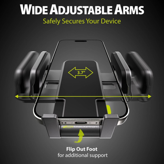 Experience the epitome of hands-free driving with the Bracketron TripGrip XT Window & Dash Extendable Mount. Engineered for your safety and convenience, this best-selling phone holder mount ensures unshakeable stability across all driving conditions. Its fully adjustable view guarantees the perfect angle for your device, with an easy one-button release that extends its arms up to 3.5 inches. Whether you have a smartphone with or without a case or a GPS device up to 5 inches, the TripGrip XT has you covered. With its Extend 360 Base, you can securely mount it to your windshield or dashboard, and the 360° rotation feature lets you switch effortlessly between portrait and landscape views. Thanks to the innovative Temberbond™ suction grip technology, this mount boasts an ultra-sticky, multi-layer suction cup design that remains reliable even after washing. Plus, it's heat-resistant and reusable, ensuring your device stays securely in place no matter the conditions. Drive confidently and hands-free with the TripGrip XT by your side.