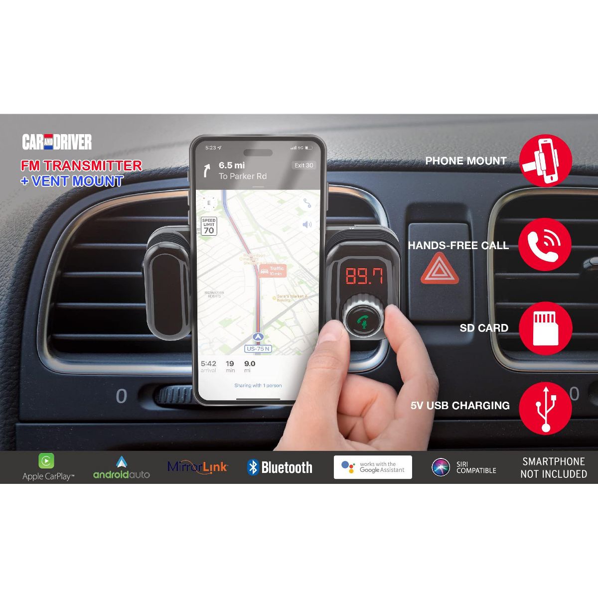 Car and Driver Bluetooth FM Transmitter & Car Vent Phone Mount