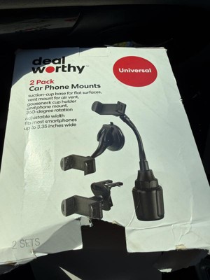 The Car Mount (2-in-1) Matte Finish 2 pk from dealworthy™ Black offers a versatile solution for securing your mobile device in your vehicle. Made from durable material, this mount can be easily attached to either the dashboard or air vent. Its adjustable design ensures a snug fit for various phone sizes, enhancing your driving experience. The compact dimensions make it a practical choice for maintaining a clutter-free car interior.