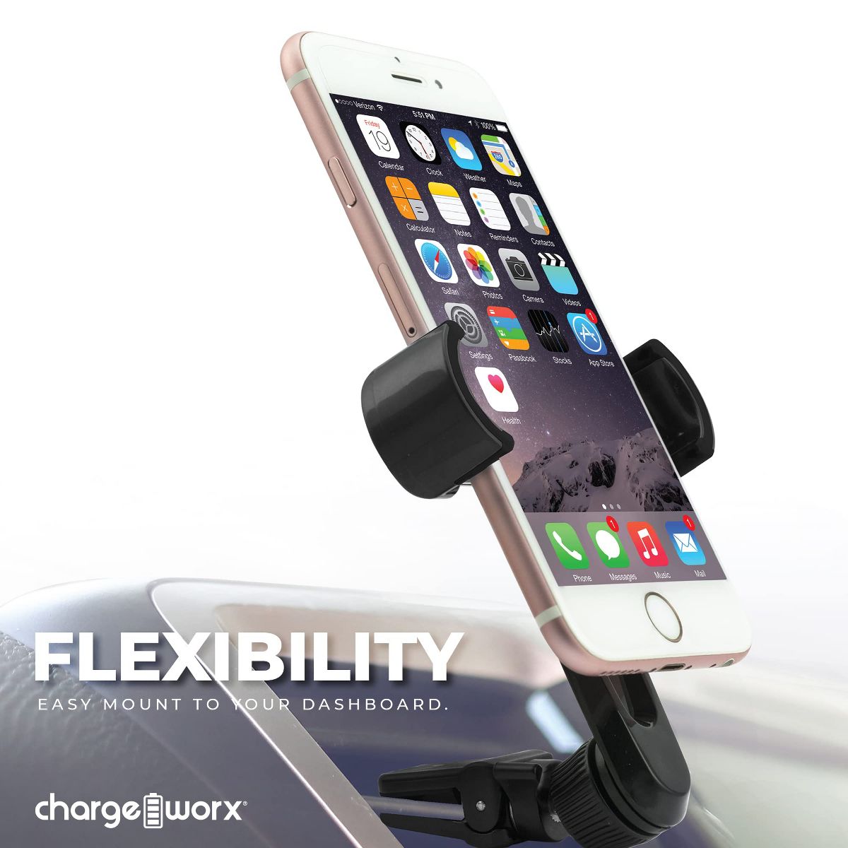 The ChargeWorx Air Vent Mount is the perfect solution for keeping your device within reach while on the road. This versatile accessory is designed to securely hold your smartphone place, allowing you to stay connected while you drive. One of the standout features of this car vent phone holder is its 360-degree rotation function, which allows you to adjust the viewing angle of your device easily. Whether you're using your device for navigation or entertainment, this feature ensures that you always have the best viewing angle for your needs. In addition to its adjustable design, the phone mount for car vent features a soft rubberized grip that helps to protect your device against scratches and other types of damage. It ensures that your device stays pristine, even with regular use. Another key feature of this car phone vent mount is its low-profile design, which sits below the vent and leaves a clean path for airflow. This helps keep your device cool and prevent overheating and ensures that the mount doesn't interfere with the function of your car's ventilation system. The car vent mount is easy to install and works with virtually any smartphone. Attach the mount to your car's air vent and adjust the grips to fit your device. Once in place, your device will stay securely in place, even on bumpy roads or during sudden stops. Whether you're a frequent traveler or need a reliable way to keep your device within reach while you're on the go, the ChargeWorx Air Vent Mount is the perfect solution. With its versatile design, soft rubberized grip, and low-profile design, this mount will become an essential accessory for anyone who relies on their device while driving.