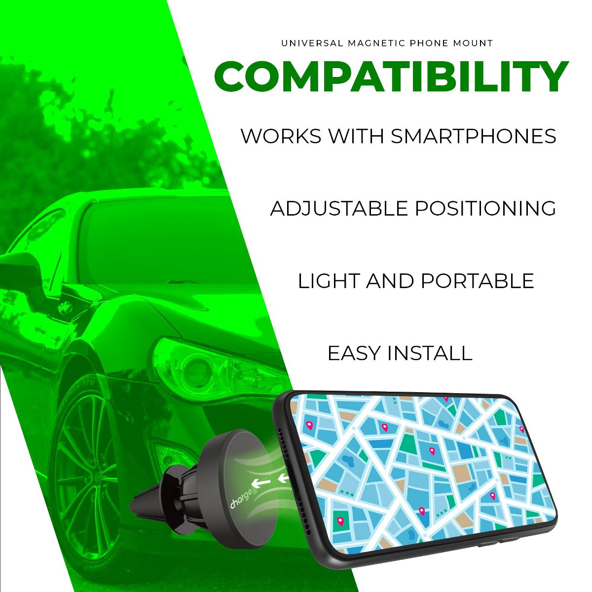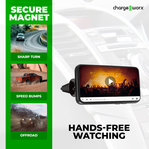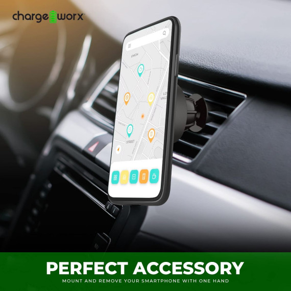 - Strong Magnetic Hold: The Chargeworx Car Phone Holder provides your vehicle with the most effortless, one-handed phone mounting possible, using a compact and powerful magnetic base to secure your device in place while you drive.