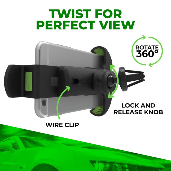 - Installs and Releases in Seconds: The mount's built-in vent clip secures your device to the car or truck's air vent louvers, securing it with a lock and release knob. Compatible with horizontal, vertical, and angled vent louvers (not for round, rotating vents).