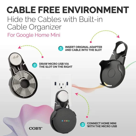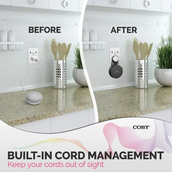 - BUILT-IN TIDY CORD MANAGEMENT: COBY's wall bracket mount is a perfectly sized cord holder that keeps your Mini Home speaker's electrical cord out of sight, no crimping or sagging