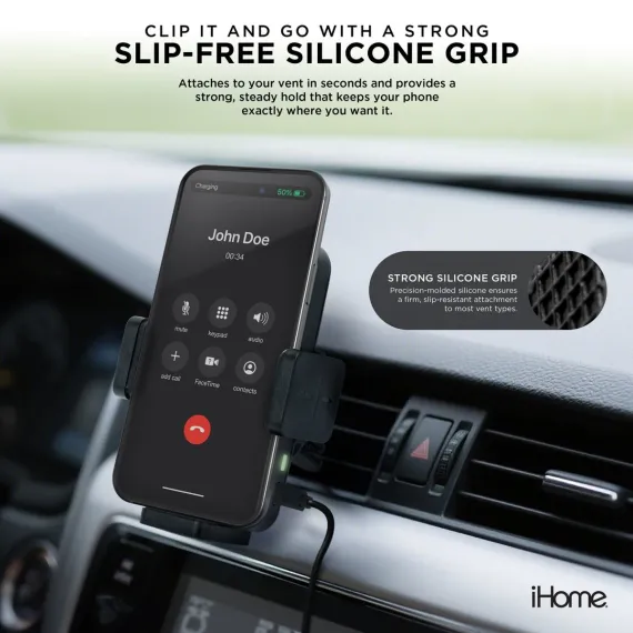 Whether you’re headed to work, out for a weekend adventure, or running errands, the iHome Universal Wireless Charging Car Mount is designed to make your life on the road easier, safer, and more convenient. Say goodbye to cords, tangled cables, and slow charging, and say hello to fast, efficient power that keeps up with your busy lifestyle.