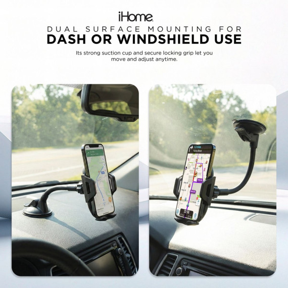 Upgrade your car setup with the iHome Gooseneck Car Mount—a clever companion that keeps your phone secure, visible, and within easy reach on every drive. This mount combines convenience, security, and flexibility to make your driving experience smoother and smarter.