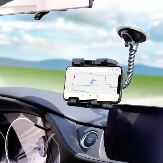 Insten Cell Phone Holder Universal Mount for Car Dashboard Windshield Compatible with iPhone 12/12 Pro Max/Mini/SE 2020/11, Samsung Galaxy Android