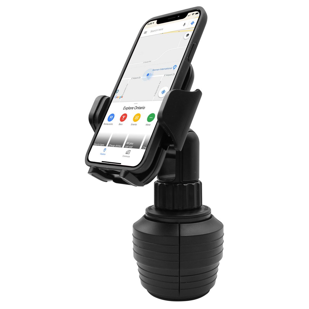 Macally Phone Holder with 9. 25" Tall Heavy-Duty Cupholder Mount for Car Works with Apple iPhone Samsung Galaxy Note, LG, Nexus, Google Pixel , Motorola, Smartphone for navigation and to entertain passengers. The holder fits any iPhone/smartphone, between 1. 77" and 4. 1" wide (with/without protective case). The soft cushioning on the holder provides a secure grip and protects your iPhone/smartphone from scratches. The Macally MCUPPROSP has an expendable base to fit car cup holders with a width of 3" to 4. 1".