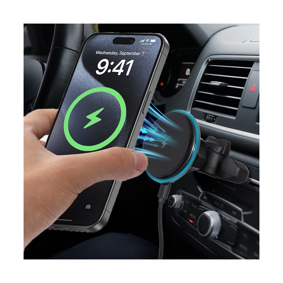 CHARGER: Simply connect USB-C cable to convert this mount into a charger. Enjoy 15W wireless charging when connected. I don't like extra wires in my car but it's nice feature for road trips.