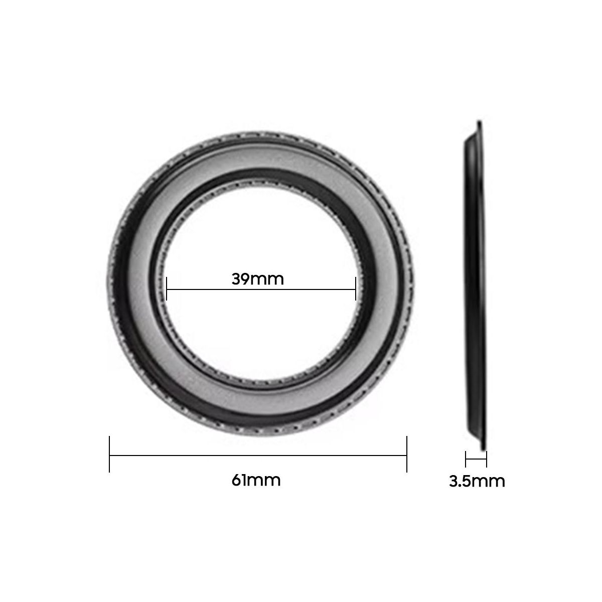 MEASUREMENTS: Black mount is 2.4" diameter and has professional black matte finish. Metal adapter ring is 2.16" diameter.