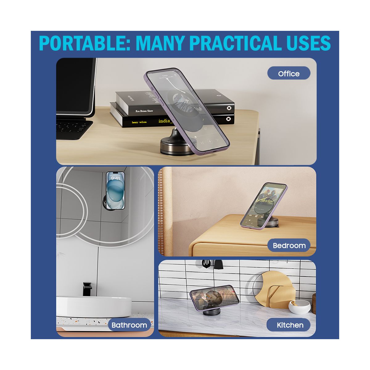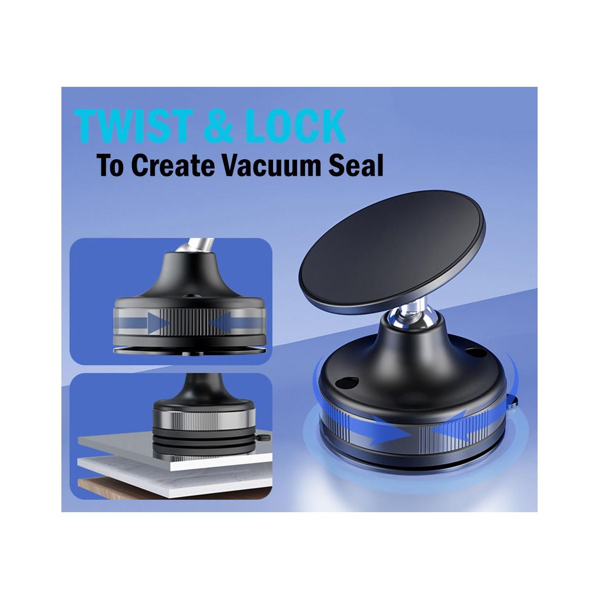 TWIST AND LOCK: Turn the dial clockwise to create a tight vacuum seal. It works great on any smooth and flat surface. Ideal for desk, bathroom mirror, kitchen window, refrigerator, wall, desktop computer, airplane tray, bus window, etc. Turn the dial counter-clockwise to remove the mount. This portable mount is versatile and convenient for facetime calls, cooking instructions, content creation, etc.