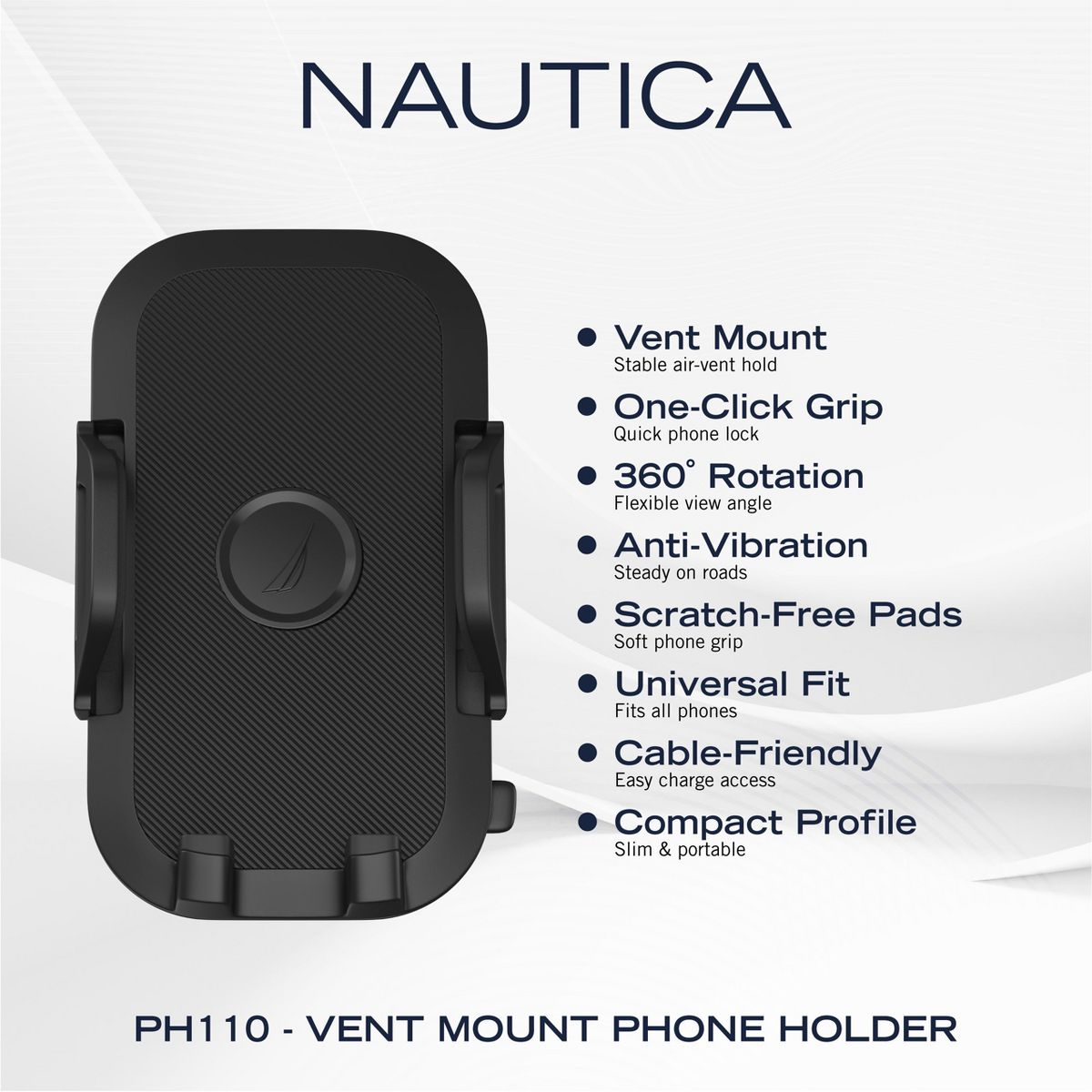 Nautica PH110 Universal Car Vent Phone Holder for iPhone, Android, Samsung, Google & Huawei, Clip-On Car Vent Phone Mount with 360° Rotation