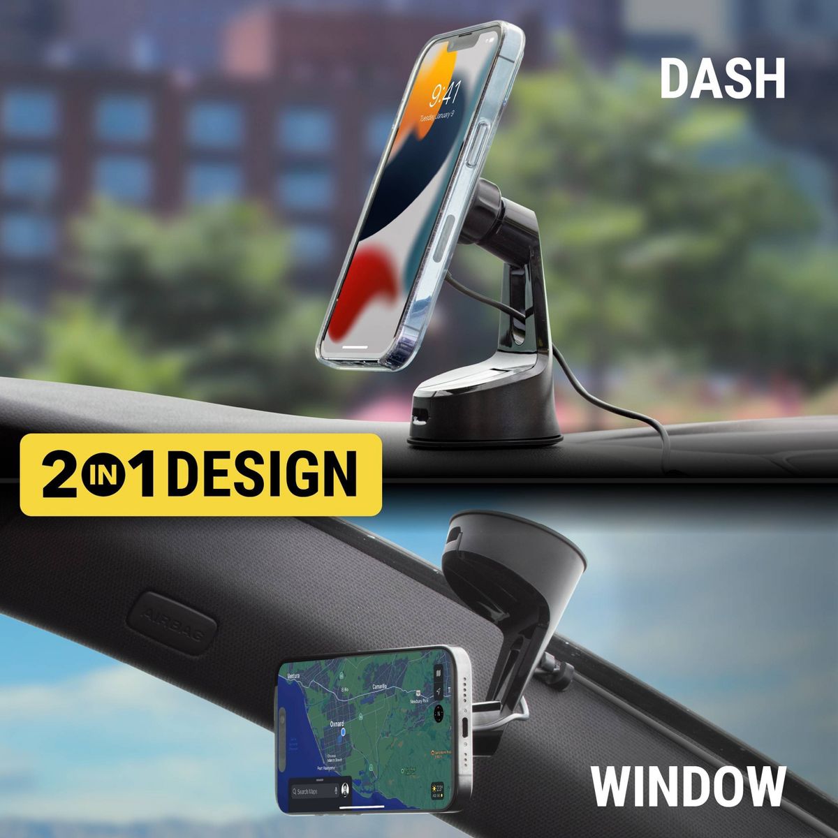Scosche MagicMount Charge6 Window/Dash Mount - Black: MagSafe-Compatible Car Charger