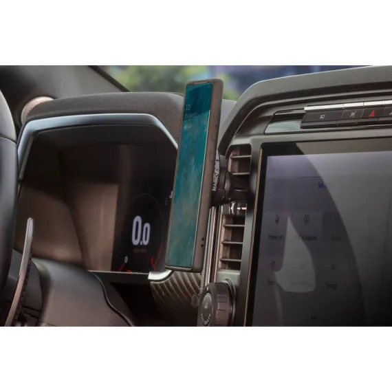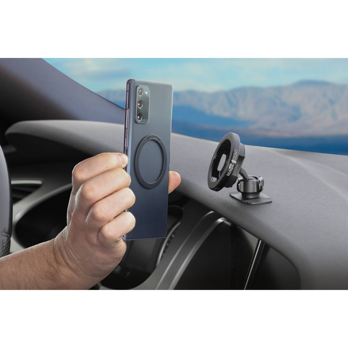 Drive with confidence and style with the Scosche MagSafe Popsocket Compatible Dash/Vent Mount, your ultimate solution for a seamless and secure mobile experience in your car. Designed to accommodate both the elegance of MagSafe and the utility of traditional magnetic phone holders, this MagSafe mount offers an instant, robust connection for all iPhone models from the 12 through the latest 16, along with compatibility for Android devices through a versatile MagicRing adapter. What sets this iphone holder for car apart is its flawless compatibility with SpinPop and other collapsible pop phone grips, allowing you to snap your device in place without removing your favorite phone accessories. Set off for a morning commute or a weekend getaway with your smartphone securely positioned, where you can easily glance at your navigation without ever losing focus on the road ahead. The multifunctional car dashboard mobile phone holder doesn't just hold your phone—it enhances your driving experience. With its dual mounting options, choose between a permanent fixture with a sturdy dashboard setup or a more transient arrangement with an easily removable car vent phone mount, allowing you the flexibility to suit your lifestyle. The 360 degree rotation dashboard cell phone holder ensures that whether you're adjusting your phone for the hands-free calls or the ideal viewing angle for your maps, your device is always just where you need it. Installation is a breeze, thanks to the minimalistic design and the automotive-grade adhesive that provides a reliable, long-lasting hold without obstructing your view or the airflow from your vents. Each magnetic holder is backed by Scosche’s renowned Lifetime Tech Support and a 3-Year Limited Warranty, giving you peace of mind that your Scosche mount is a lasting companion on all your journeys.