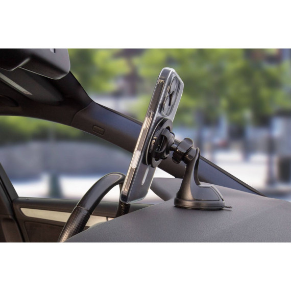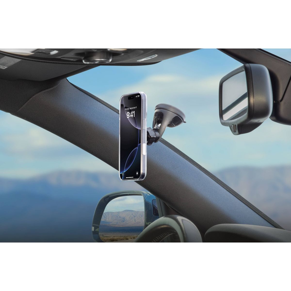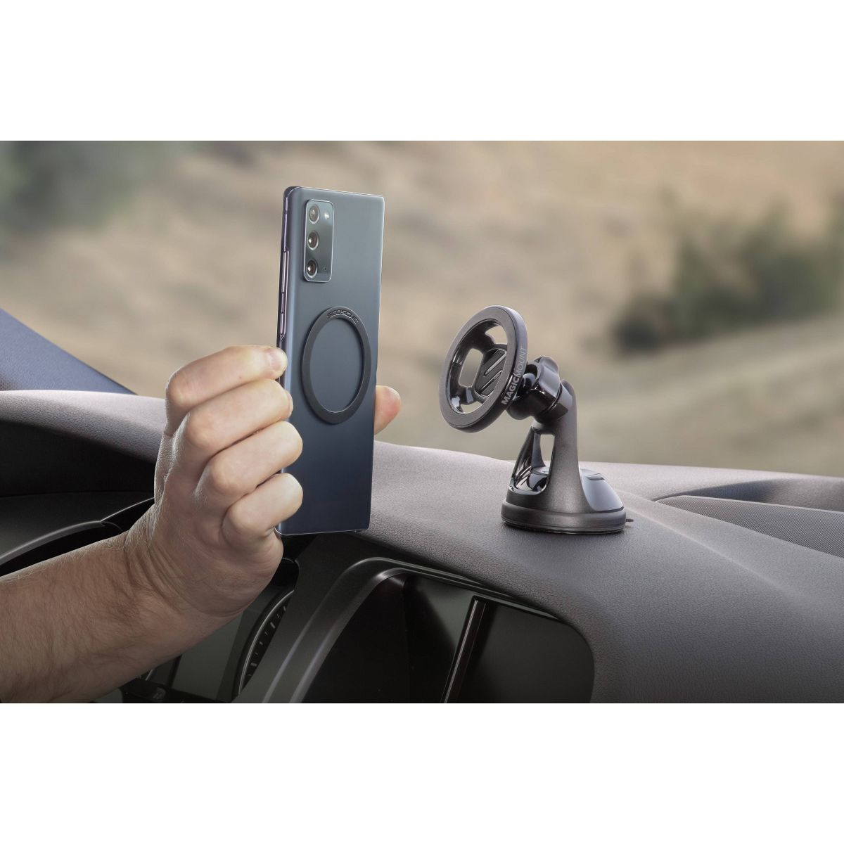 Drive with confidence and style with the Scosche MagSafe Popsocket Compatible Window/Dash Mount, your ultimate solution for a seamless and secure mobile experience in your car. Designed to accommodate both the elegance of MagSafe and the utility of traditional magnetic phone holders, this MagSafe mount offers an instant, robust connection for all iPhone models from the 12 through the latest 16, along with compatibility for Android devices through a versatile MagSafe ring. What sets this iphone holder for car apart is its flawless compatibility with SpinPop and other collapsible pop phone grips, allowing you to snap your device in place without removing your favorite phone accessories. Set off for a morning commute or a weekend getaway with your smartphone securely positioned, where you can easily glance at your navigation without ever losing focus on the road ahead. The multifunctional car dashboard mobile phone holder doesn't just hold your phone—it enhances your driving experience. With its dual mounting options, and robust StickGrip suction cup base choose between mounting this phone stand on your car dashboard for close access, the windshield for a broader view or use it at your home office desk, allowing you the flexibility to suit your lifestyle. The 360 degree rotation dashboard cell phone holder ensures that whether you're adjusting your phone for the hands-free calls or the ideal viewing angle for your maps, your device is always just where you need it. Installation is a breeze, thanks to the minimalistic design and the StickGrip suction cup base that provides a reliable, long-lasting hold without obstructing your view. Each magnetic holder is backed by Scosche’s renowned Lifetime Tech Support and a 3-Year Limited Warranty, giving you peace of mind that your Scosche mount is a lasting companion on all your journeys.