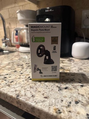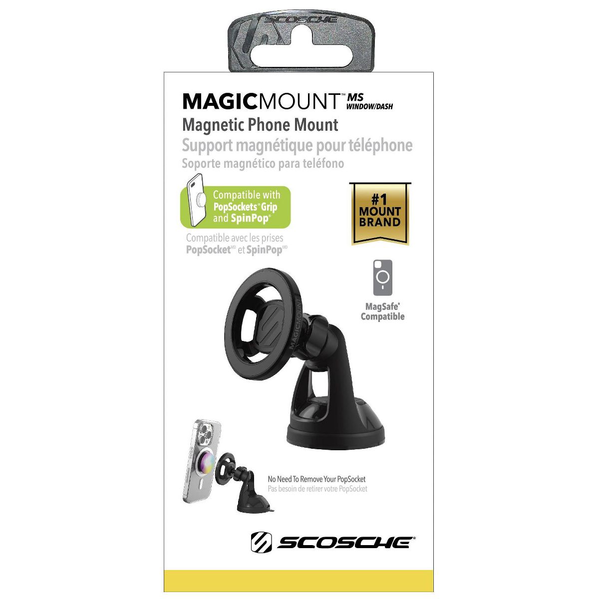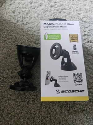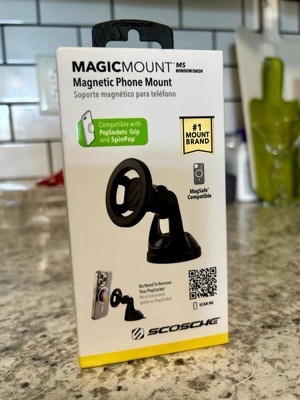 • Scosche MagicMount Magnetic Phone Mount Strong magnet, sleek design, and super convenient. Holds phones firmly even with a PopSocket attached. Quick to install and works great on dash or windshield.