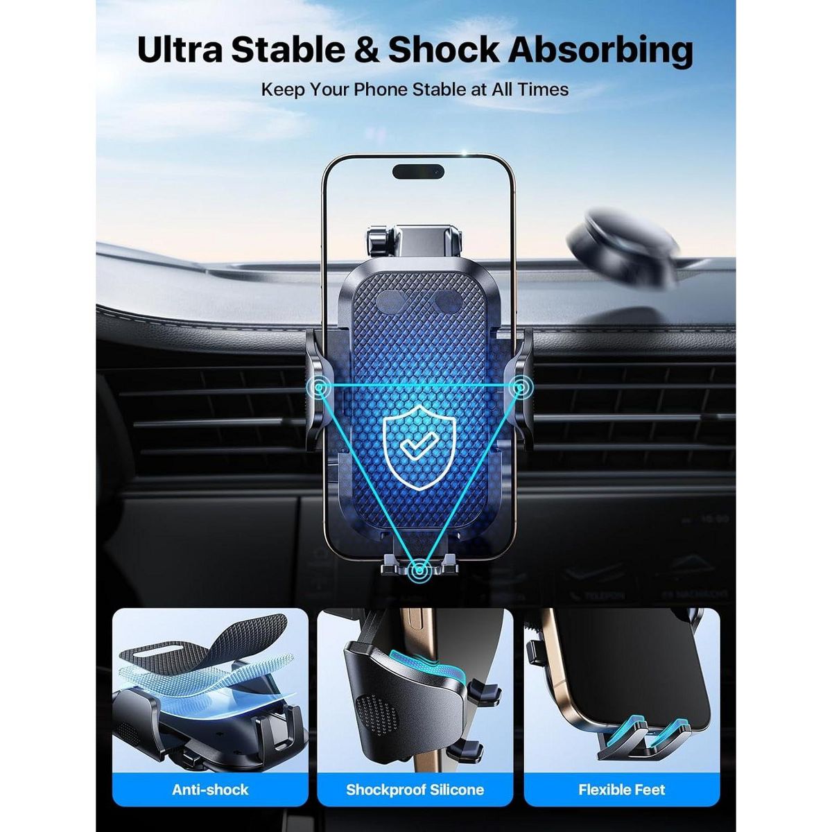 [Wide Compatibility, Big Phones & Thick Cases Friendly] Listening to 22,000+ customers' voices, we upgraded extra deeper and wider adjustable clip arm of this cell phone car mount to make it fits big phones and thick case. This cell phone holder car is compatible with all mobile phones between 4 and 7 inch, compatible with iPhone 17 Pro Max 16 15 14 13 12 11 XR X 8 7 SE mini Samsung Galaxy S25 Ultra S24 S23 S22 S21 A53 A22 Google Pixel Xiaomi Motorola, etc.