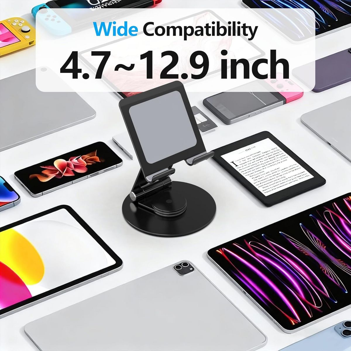 TEMI Aluminum 360° Rotating Tablet Stand - Adjustable for All 4-12.9" iPad, Surface, Kindle & Phones. Black