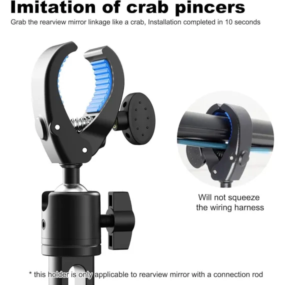 Easy Installation: Installing our phone holder is a breeze. It requires no complicated setup. Simply attach it to your rear view mirror using the adjustable clamp., saving you time and effort.