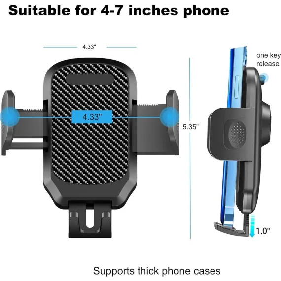 Universal Compatibility: Designed to fit most smartphones, our Rear View Mirror Phone Holder accommodates devices of various sizes. Whether you have an iPhone or Android, this holder will securely grip your phone.