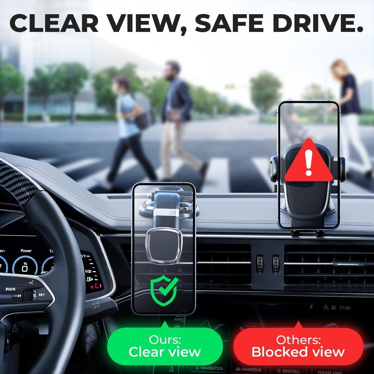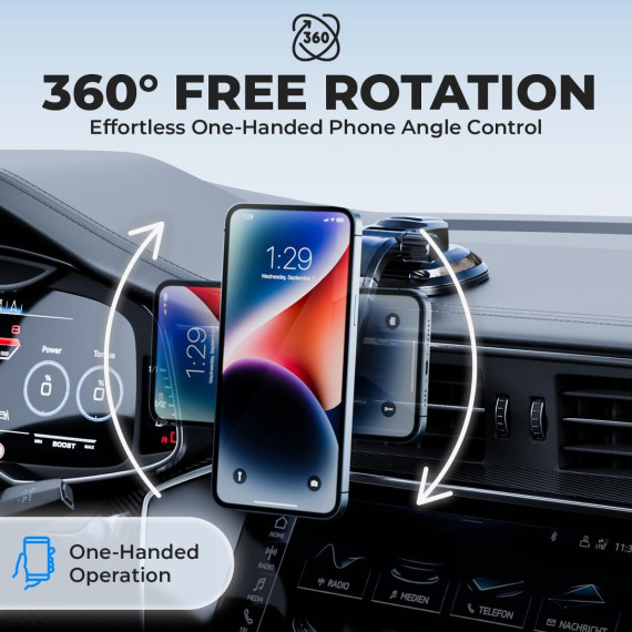 GIVE YOUR DASHBOARD THE LUXURIOUS LOOK YOU SEEK - Magnetic Car Mount will give your dashboard the luxurious look you seek, an easy 360° rotation of your phone display and an arm you can adjust for your convenience, guaranteed not to block the driver’s viewer your phone charging ports.