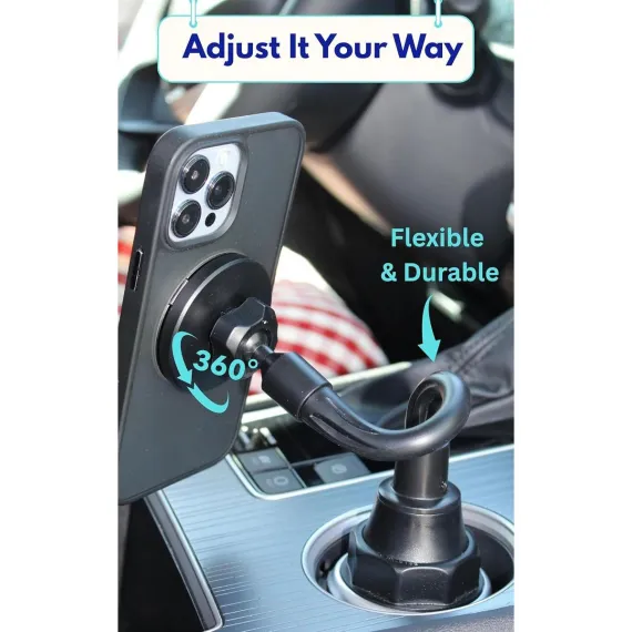 EXPERIENCE UNMATCHED MAGNETIC STRENGTH - Custom-engineered with 20-PCS N52 magnets, this cup holder phone mount keeps your phone locked in place, even on bumpy roads or off-road trips. The magnet is so strong it can hold up to 12 times the weight of an iPhone Pro Max, so your phone stays safe and steady no matter where you drive.