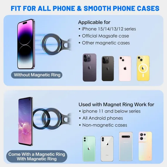 [ONE-SECOND FIXED WITH POWERFUL MAGNETISM] New designed steering wheel phone holder has a magnetic function and comes with powerful magnets that can firmly attach and secure your phone. It can be installed in one second without the need for any additional tools, ensuring a secure and stable phone for your convenience and speedy use