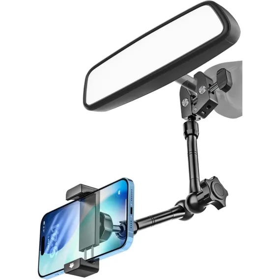 【Strong and Durable】Our rear view mirror phone holder is made of high quality aluminum alloy for durability. It's able to withstand the rigors of everyday use and is shock-resistant, providing solid support for your cell phone even on bumpy roads.