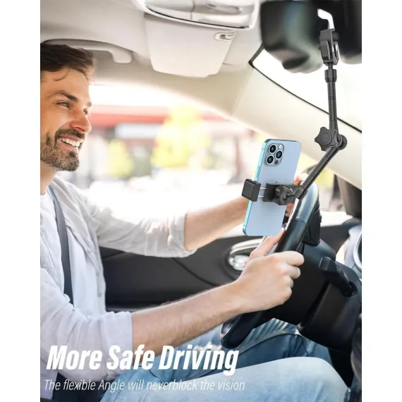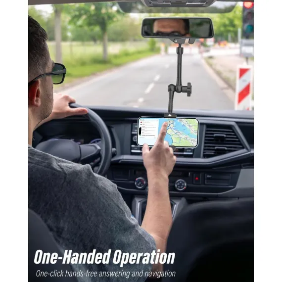 【Realize Full Angle Adjustment】The phone mount for mirror base mount is designed with four joints and three arms that only controled by a specially upgraded knob, allowing the arm to fold and lock easily.Provide drivers with a safe and comfortable navigation angle, which is flexible and not cumbersome. The head and tail arms can rotate 360 degrees and adjust 90 degrees, while the middle arm can rotate 360 degrees and adjust 180 degrees, easily achieving the position, angle, height, and length you want.
