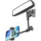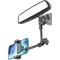 TEMI Metal Arm Rearview Mirror Phone Holder - Car Mount Cradle for iPhone, Galaxy & 4-7" Phones.
