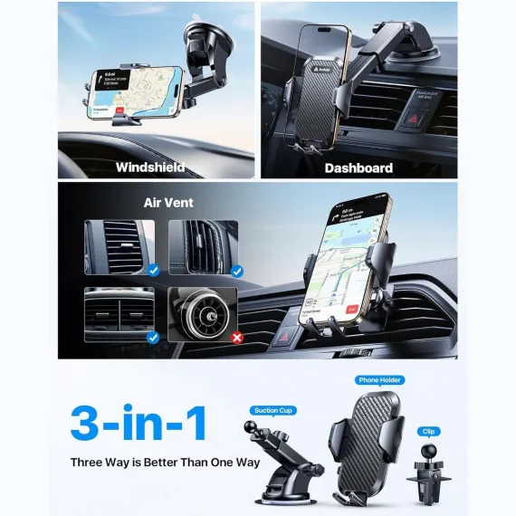 【Andobil 3-in-1 Universal Car Mount – Your Trusted Driving Companion】 Join over 90 million satisfied users who trust Andobil for premium quality and innovative design. Our car mount features advanced nano gel suction cups and robust steel core vent clips, ensuring a secure hold on dashboards, windshields, and air vents. Perfectly compatible with various vehicle types, including trucks, SUVs, and cars.