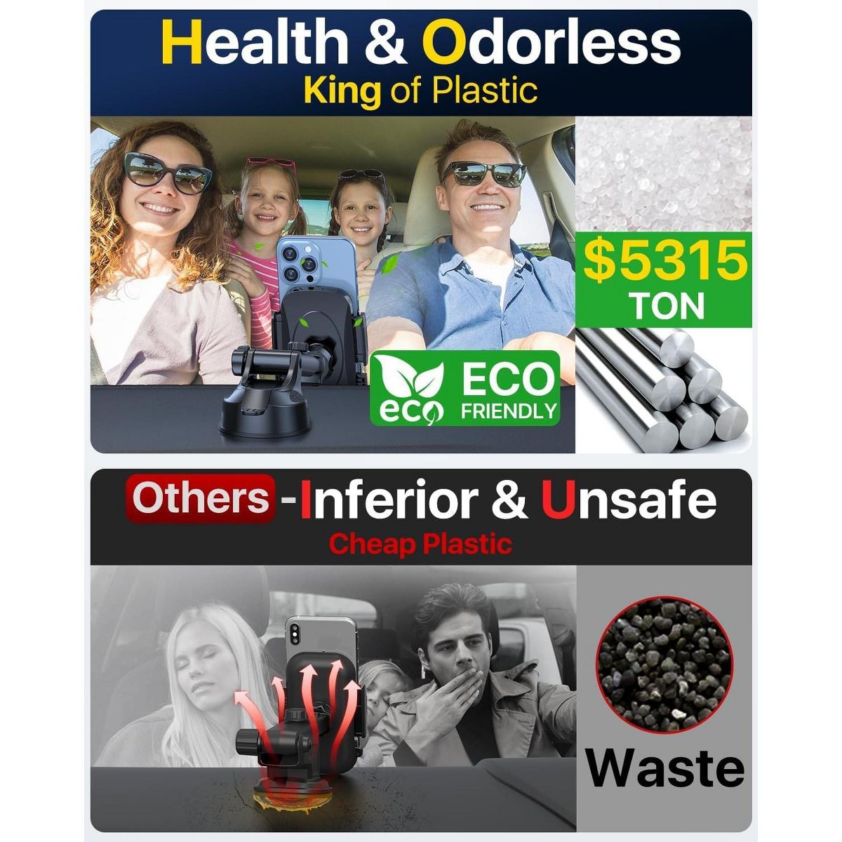 [Good Choice: High-End Car Mount Trusted by 2,500,000+ Users over 15 Years] 2025 car phone holder is certified by all authorities (International Military-Grade Shockproof Cert , CP65, REACH, RoHS), based on Unique Grandmaster Design (EUIPO Patent), TOP Durable & Healthy Materials from 4,000+ materials & Industry-Leading Safety Tests (Monthly 5,000+ open/close test; 10,000+ vibration resistance; 100,000+km rugged road tests; -40°F to 203°F laboratory test)