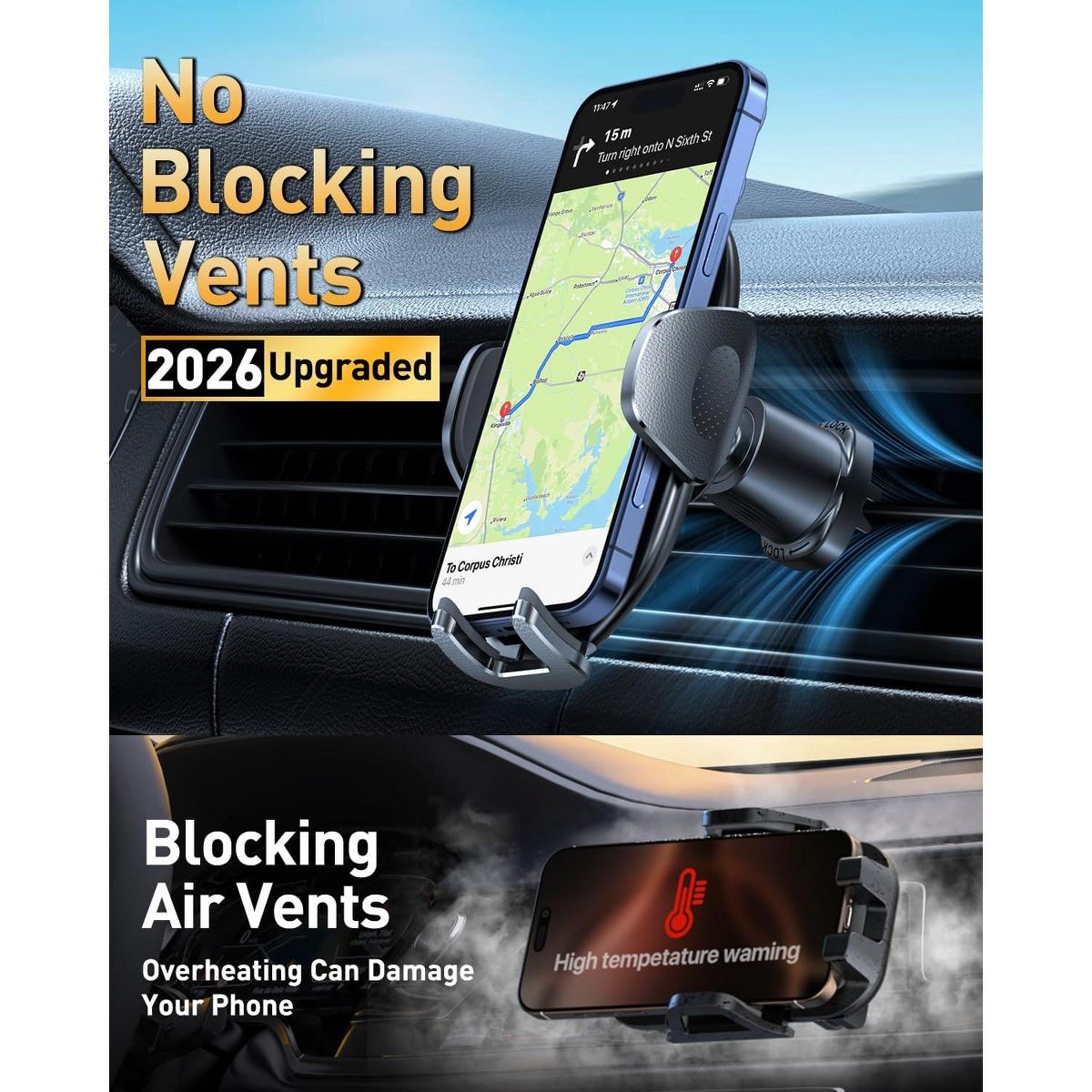 [ Classier & Prettier ] Sleek appearance will be the most practical decoration of your car; The small mobile phone holder will not affect your vision or the cold/warm air of the vent. it's pretty for iPhone 17 Pro Max/ 17 Pro/ 17 Air/ 17,16 15 14 13 12 11 8 7 pro max, X, XR, and SE except for the Fold/Z Flip series. Support 0.24 inch max thickness PHONE CASE ( the total thickness of the phone and the case does not exceed 0.76 inch ) , such as Silicone, Clear, Rubber, and Leather, not for ring phone or uneven case