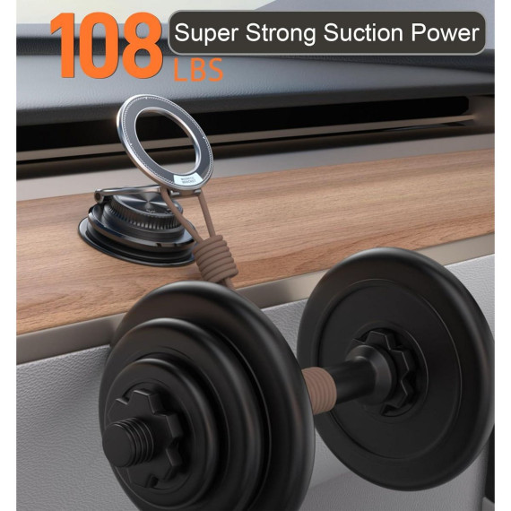 【Twist-Lock Enhanced Vacuum Suction – Up To 109LBS Super Strong Hold】 Lighter than most phone holders yet compact and powerful, this reinforced twist-lock car phone holder mount delivers an ultra-secure grip with 109LBS suction force. Engineered for durability, this magnetic phone holder for car stays steady even on rough roads. Designed for windshields and smooth surfaces, it also works as a dashboard phone holder with the included adhesive disc—making it one of the most reliable phone holders for your car.