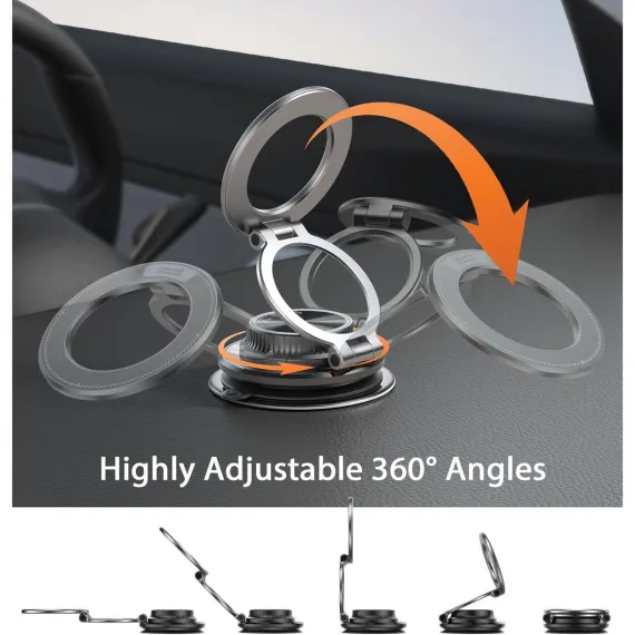 【Durable Suction Cup – Reliable on Smooth Surfaces】 The reusable suction cup makes this dashboard phone holder strong and long-lasting, ideal for windshields, smooth dashboards, or car display screens. Designed as a magnetic phone holder for car, it offers a stable grip to keep your device safe on every drive.