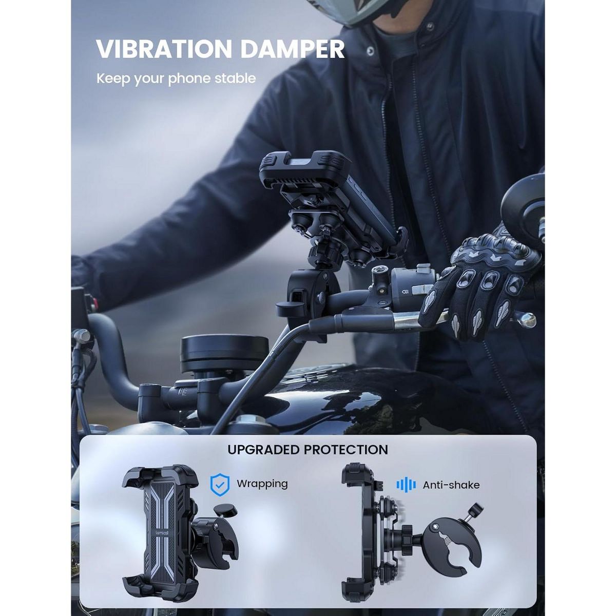 【 Patent Anti Shake】 The phone mount equipped with patented vibration dampener, effectively reducing the vibration generated when the engine is running at high speed. The four damping springs on the metal board can effectively absorb vibrations, protecting your phone camera from being damaged.