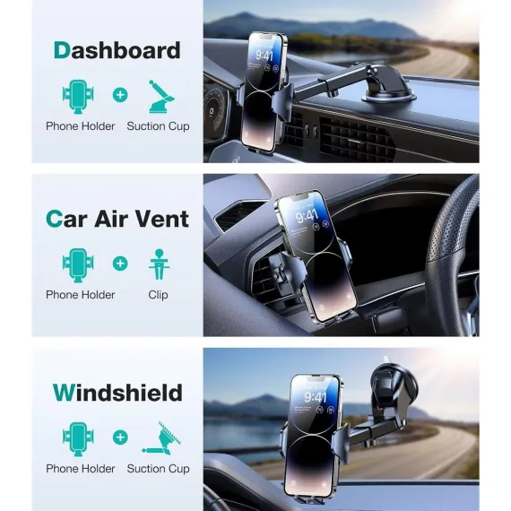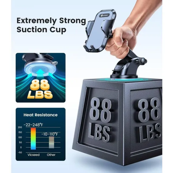 [2025 Upgraded Strongest Suction] After 8 years of over 20000 testing materials, Using exclusive synthesis technology of Fluorosilicone Rubber (most heat-resistant material) and nano-adsorbent materials (strongest suction material) to improve car phone mount suction and durability to best ever, suction power increased by 86%, and withstands extreme weather between 44°F to 194°F even under like Minnesota or Florida. Globally patented with EUIPO Patent No 007708805-0001& US No.: US D892,787 S