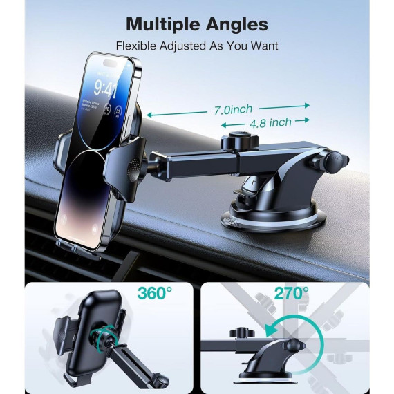 [Flexible Positioning, Effortless Phone Access] VICSEED car phone mount features an extended 7.3" and a 270° adjustable mechanical long arm, complemented by a highly flexible 360° rotating joint ball, providing a diverse range of viewing angles. The incorporation of a high-quality knob ensures exceptional durability, surpassing car mounts under 20$ that may degrade over time. Experience the ease of hands free adjustment, no need to pull over and enabling you to stay focused on the road.