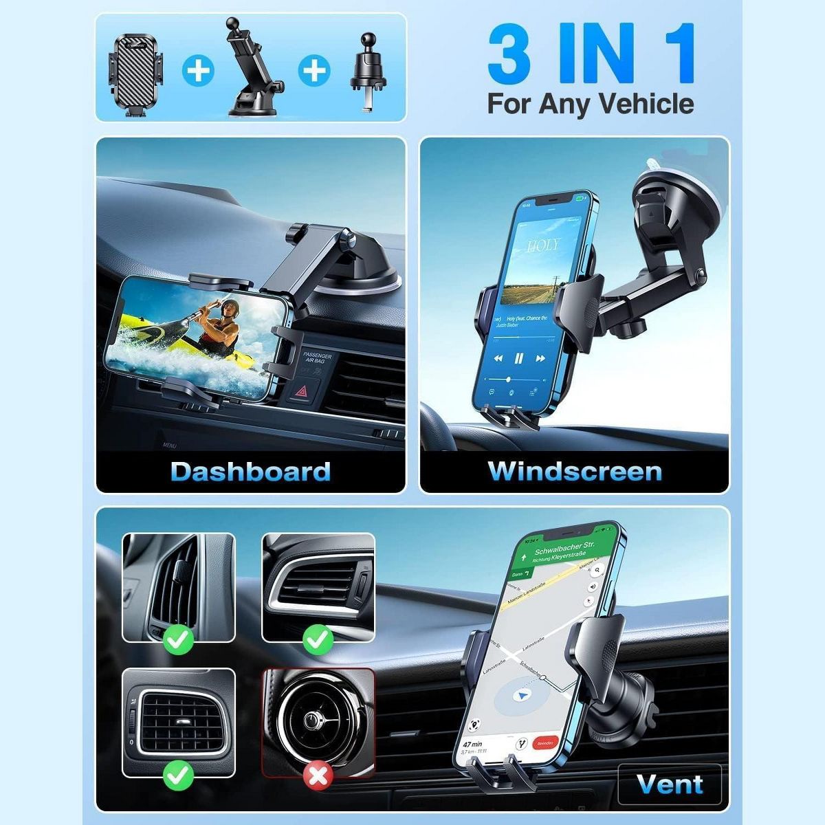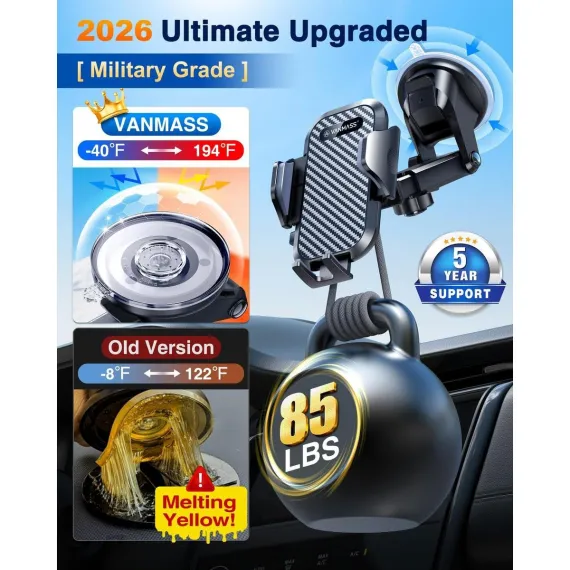 【-, 】Whether on the dashboard/ windscreen/ vent or on the desk, this suction cup phone mount works perfectly. vanmass 2026 ultimate car phone mount can also be a smartphone for desk & kitchen & bathroom & gym & office, meeting & bedside table, such a multi-scene design! Great for most cars, pickup trucks, SUVs, trucks, taxis, touring cars; A good assistant to Uber, Lyft drivers
