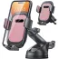 Enhanced Strong Suction Cup: We upgraded the suction cup material from transparent plastic to black stronger gel adhesion. Therefore it won't turn yellowing, losing suction. Press down vacuum lock, phone mount for car will stick securely. If you install it on the adhesive pad, which sticks well to porous or textured dash, supporting weight can be up to 80lbs. Furthermore, the suction cup is reusable, when dirty, use warm soap water to wash then let it dry, it will be sticky again.