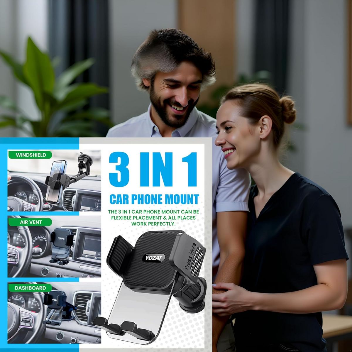 3 in 1 Cell Phone Mount: The mount should be easy to install without the need for additional tools. Suction cups, adhesive pads, and vent clips should attach securely with minimal effort. Choose mounts that can be removed without leaving sticky residue or damaging your dashboard, windshield, or air vents, allowing for hassle-free relocation or switching between vehicles.