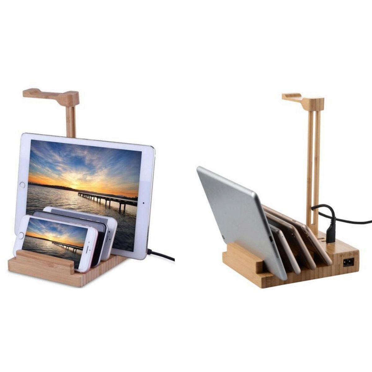 ZTECH Wooden USB ports Charging Station for Headphone and Smartphone
