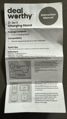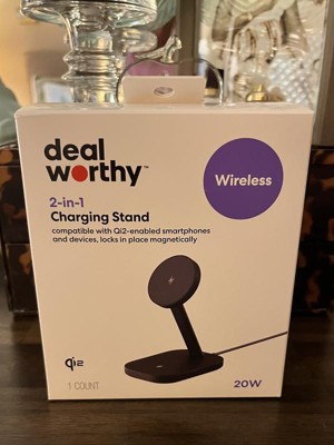 Power up your essentials with ease using the 2-in-1 15W Charging Stand from dealworthy™ in Black. Designed for convenience and efficiency, this lightweight wireless charging stand delivers up to 20W of fast charging power for compatible smartphones and accessories. With dual charging capability, it can power multiple devices at once, while the charge indicator light keeps you informed of your device’s charging status. The USB-C connection ensures reliable power delivery, and the 3-foot cable provides flexibility for desktop or bedside setups.