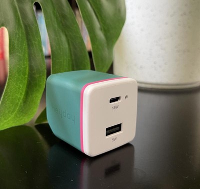 2-Port 20W USB-A and USB-C Wall Charger - heyday™ Bright Teal: Quick Charge USB-C Plug