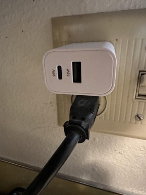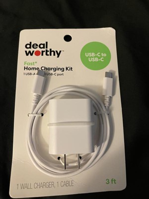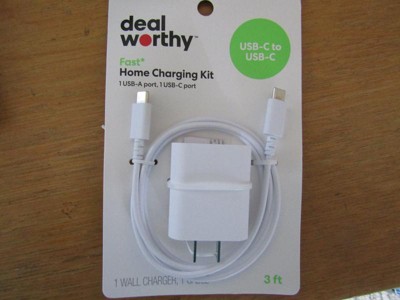 2-Port 25W Wall Charger with 3' USB-C to USB-C Cable - dealworthy™ White: Dual USB-C Output, Quick Charge