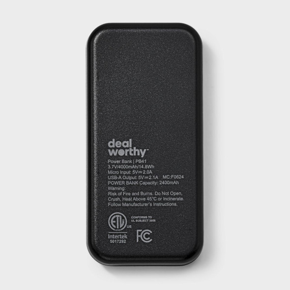 Keep your devices powered up on the go with the 4000mAh Power Bank with Micro USB Cable from dealworthy™ in Black. The lightweight design makes it easy to carry, while the short circuit protection and charge indicator light ensure safe and reliable charging. Compatible with USB-A and Micro USB connections, it includes a Micro USB cord for convenience. Ideal for single-device charging, this rechargeable power bank is an essential travel companion.