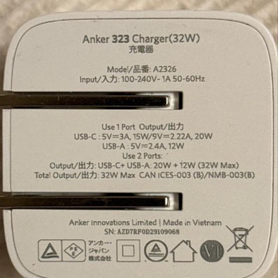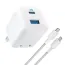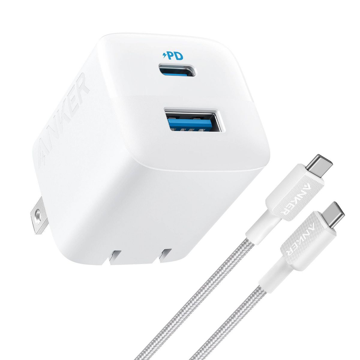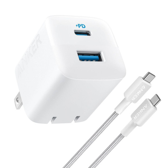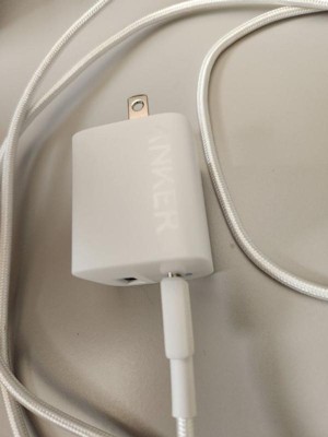 Anker 2 Port 33W Wall Charger with 6' USB-C to USB-C Cable - White: Quick Charge, 9V Output