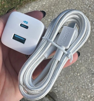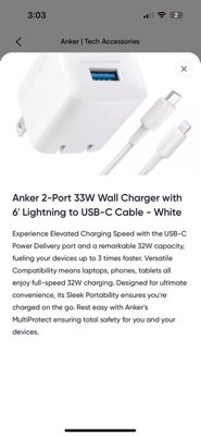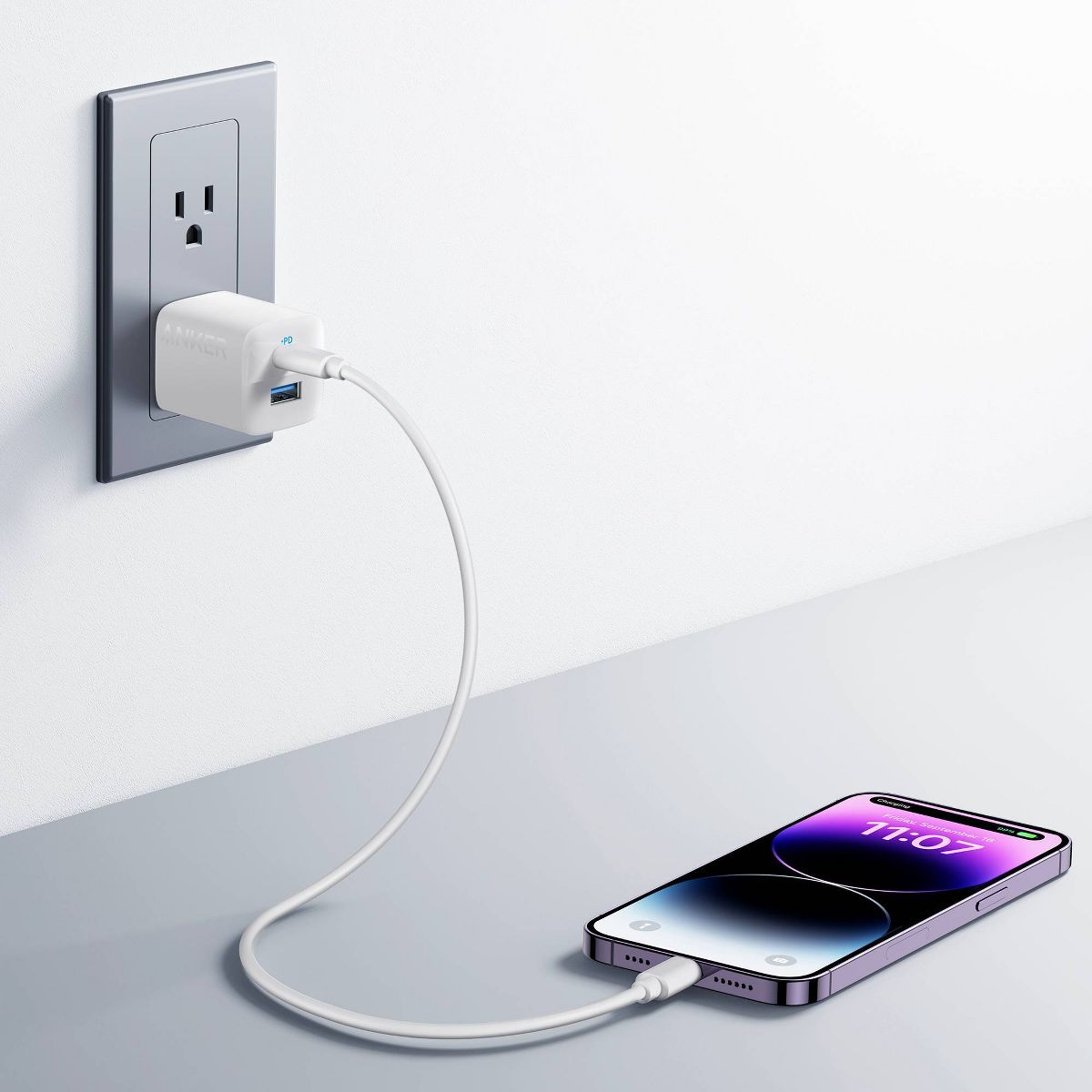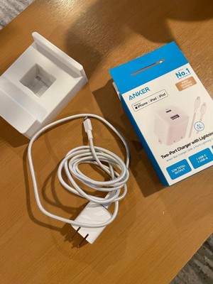 Anker 2-Port 32W Wall Charger with 6' Lightning to USB-C Cable - White: Quick Charge USBC Block