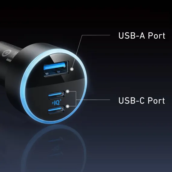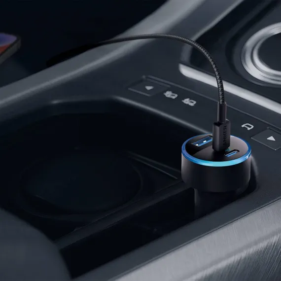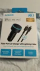 Anker 3-Port 67W Car Charger with 3' Lightning to USB-C Cable - Black